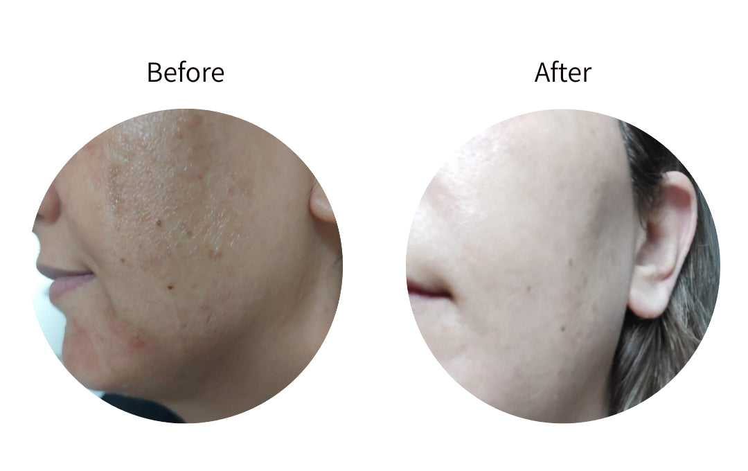 2) Using a gauze pad, go over entire facial area with 8 pumps of Whitening Peeling Acid.